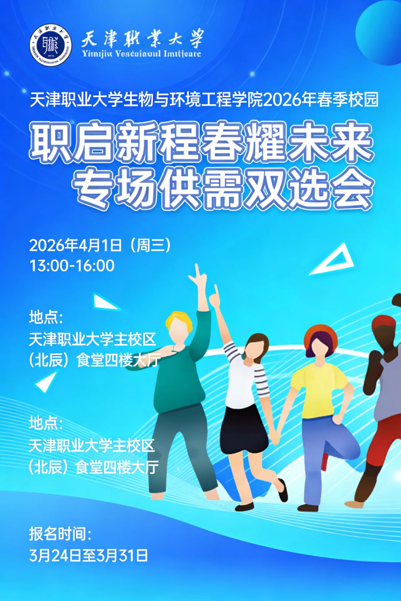 春风送暖,万物复苏。为深入贯彻落实高校毕业生就业工作部署,搭建毕业生与用人单位精准对接平台,促进我院毕业生高质量充分就业,学院定于2026年4月1日举办春季校园专场供需双选会,诚挚邀请贵单位莅临选聘英才!